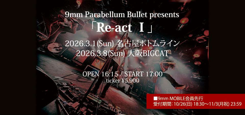 来年3月に『 9mm Parabellum Bullet presents「Re-act I」』開催決定!
