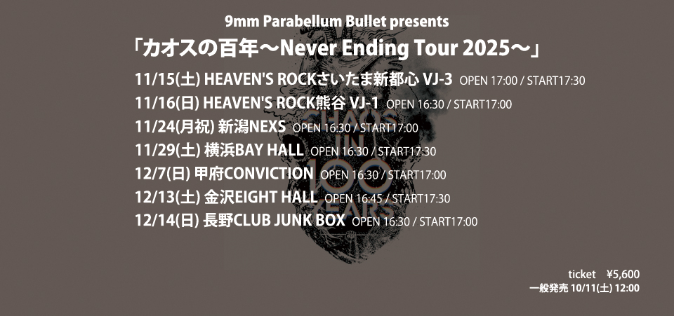 9mm Parabellum Bullet フロアライブ2025 『新宿FACE、死角なし。』